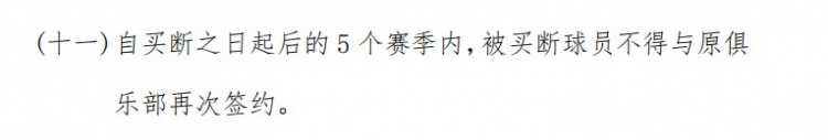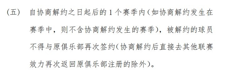 球队和球员协商解约后,双方一年内不得再次签约。