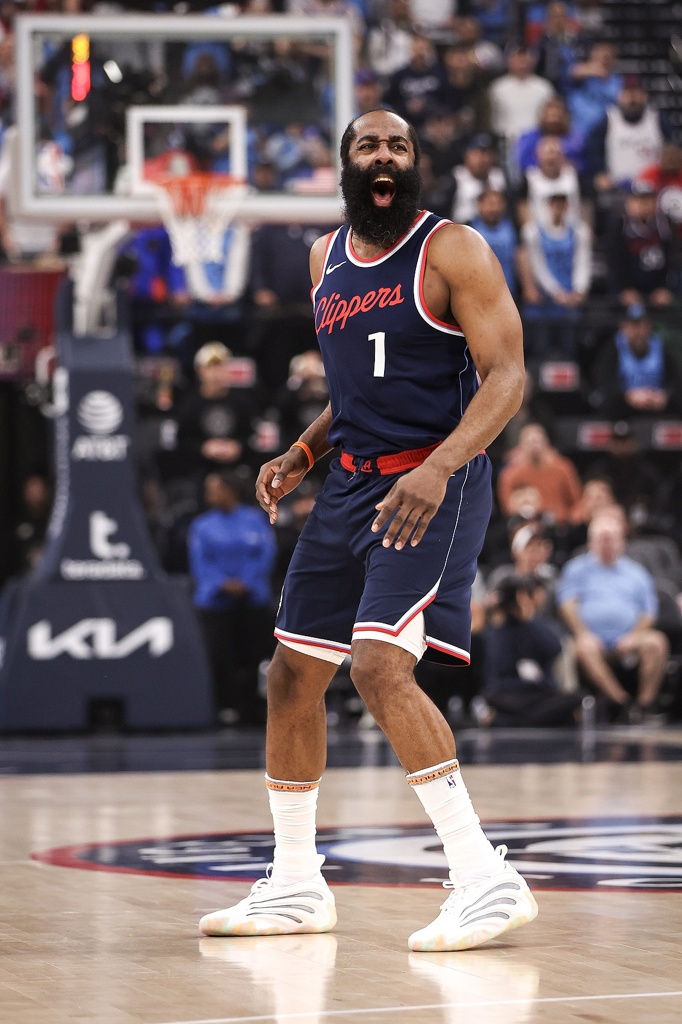 当35岁的詹姆斯·哈登在末节突破暴扣后仰天怒吼时,整个直觉穹顶球馆的声浪几乎掀翻穹顶。这一刻,洛杉矶的夜晚属于这个蓄着胡须的老兵——他像一把重燃的烈焰,将五年的质疑与蛰伏烧成灰烬,用一场50分的超神表演,向世界宣告:那个掌控比赛、收割纪录的“登峰造极”时刻,从未真正远去。