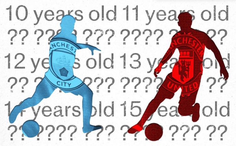 3月19日讯 据《电讯报》独家报道,有6名来自曼联和曼城青训的球员被质疑年龄造假。
