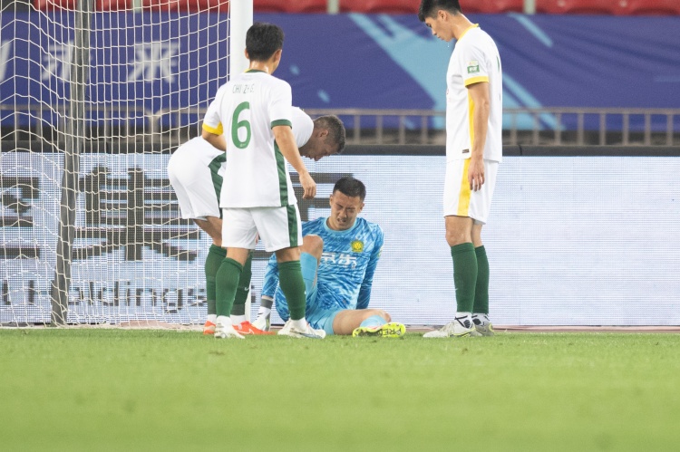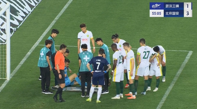 韩佳奇在国安4-4三镇的比赛第55分钟受伤,他在接受简单治疗后仍完全无法行走,被队医背下场。
