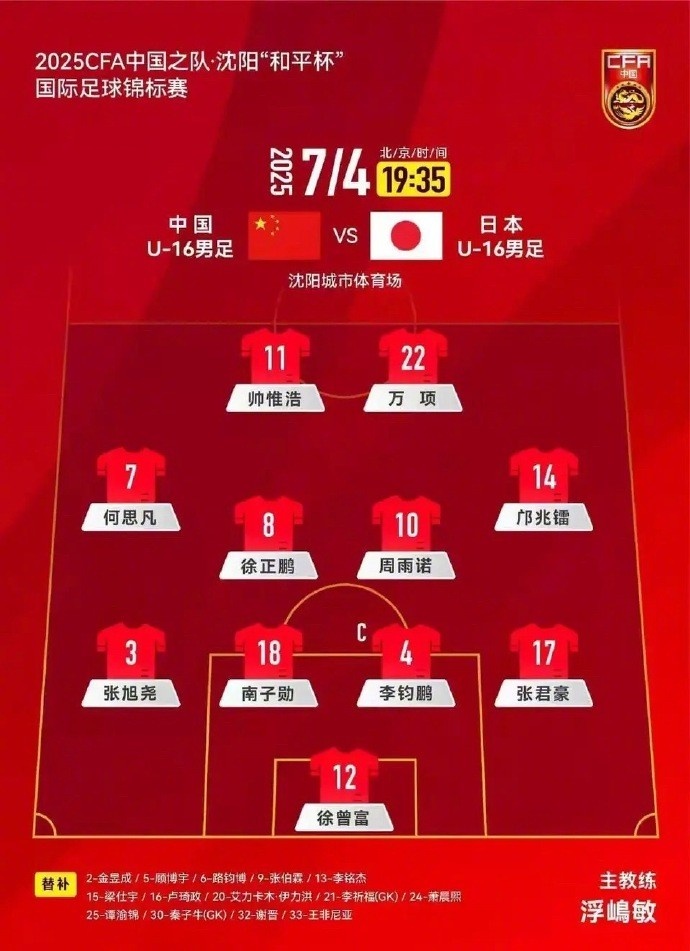 7月5日讯 沈阳“和平杯”国际足球锦标赛,中国U16以1-1战平日本U16。
