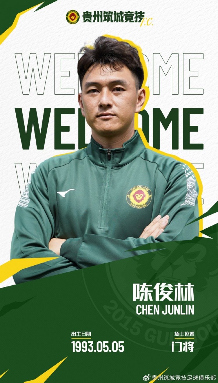 欢迎陈俊林加入贵州筑城竞技大家庭,让我们一起凝心聚力,一起为贵州而战!