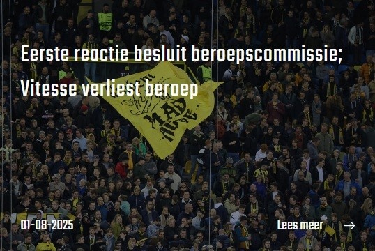 “维特斯俱乐部对这个上诉结果感到失望,因为俱乐部存过去一段时间内一直在努力恢复、提高透明度、确保未来可持续发展。我们已经竭尽全力希望说服执照委员会,以及之后的职业委员会,认为吊销参赛执照的决定是不正确的,并且没有充分考虑到我们的所有努力。比如,维特斯和计划成立的新监事会、俱乐部董事会、维特斯职业足球基金会共同制定了一个战略重组计划。”
