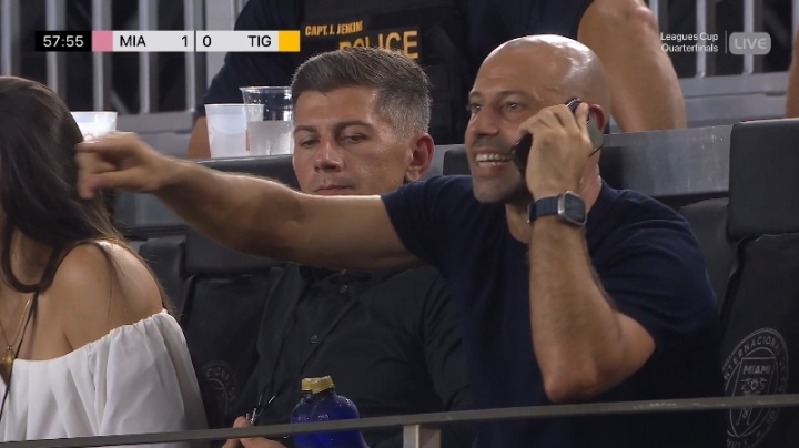 在北美联盟杯1/4决赛,迈阿密国际2-1战胜老虎大学。马斯切拉诺在上半场结束后抗议裁判并吃到红牌,但下半场他坐在距离球场很近的看台上,并通过手机指挥球队。马斯切拉诺首先表示:“我坐的地方符合规则,那也是看台的一部分。只是很碰巧,迈阿密国际主场的看台距离球场很近,而我想要尽可能靠近球场,仅此而已。”